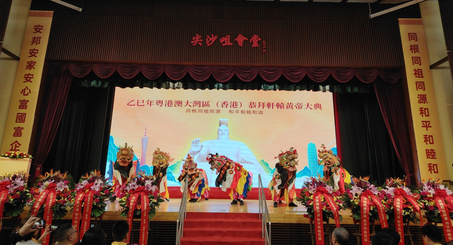 乙巳年粵港澳大灣區恭拜軒轅黃帝大典在香港禮成香港新聞網3月26日電(記者 吳一帆)乙巳年粵港澳大灣區(香港)恭拜軒轅黃帝大典26日在香港尖沙咀街坊福利會莊嚴而熱烈地舉行,來自粵港澳大灣區的政府官員代表、僑界商界精英和愛國社團、社會賢達、媒體記者等400餘人參加。本次大典是河南鄭州新鄭乙巳年黃帝故里拜祖大典的粵港澳大灣區同拜活動。 大典開始前,現場揮舞國旗、區旗,高呼“同根同祖同源” 當天上午9時30分,會場門口鑼鼓喧天,象徵吉祥和平的“祥瑞之獸”麒麟迎賓。