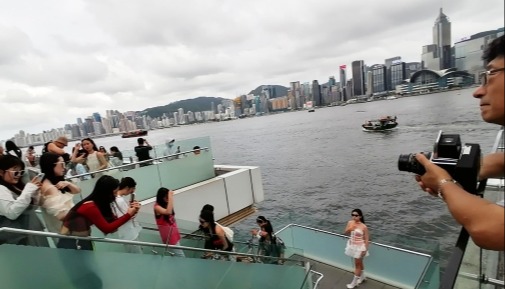 香港中通社5月1日電 題:“五一”灣區一程多站成趨勢 團客散客齊聚首選香港 香港中通社記者梁嘉軒曹文毓 在尖沙咀海傍,來自內地的旅客在星光大道上,伸出手指頭,跟隨著社交媒體上的“成功人士三件套”打卡攻略,模仿名人,期待自己能“‘指’定發財”。除了跟著網絡熱潮打卡的散客,還有欣賞維港美景的團客,他們拿著手機將香港的天際線拍下,不少團客較為年長。