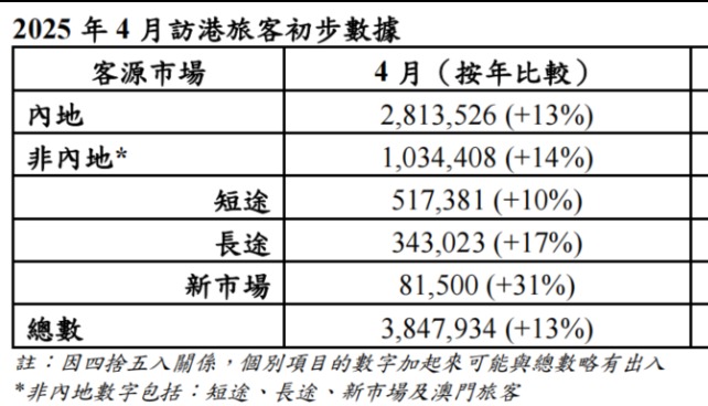 香港4月迎380萬人次旅客按年增13% 內地客佔7成3分享到: