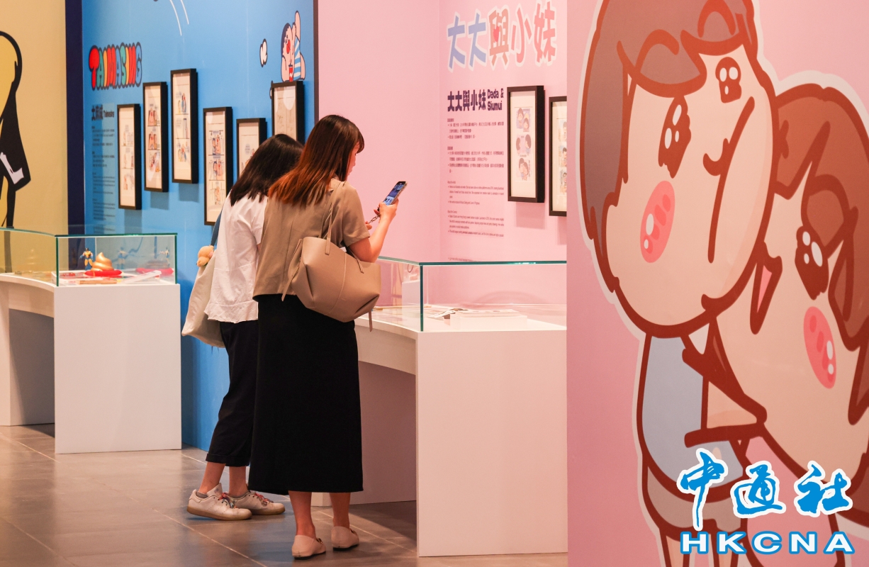 “漫眾同樂—幽默港漫格格趣”展覽現場。(香港中通社 呂真好攝) 香港動漫畫聯會會長黃玉郎指,今次展覽是香港漫畫流行文化傳承的見證,希望透過展覽,將香港獨特的幽默感繼續傳揚及發揚光大,讓更多人感受到港漫的魅力。 開幕典禮其他主禮嘉賓包括文創產業發展處總監(多媒體)蘇超駿、博物館諮詢委員會歷史專責委員會主席莫家豪教授和香港文化博物館總館長林國輝。 香港文化博物館的展廳及館內各處設有不少“打卡位”,市民可與11組不同年代的幽默漫畫人物,包括老夫子、牛仔、壽星仔、哨牙珍、Q小子、老少女、癲噹、丁丁企鵝、大麻成、IT男與藝術女,以及大大與小妹合照,並透過數碼似顏繪、漫畫哈哈鏡、漫畫照相館等精心設計的互動展品體驗幽默漫畫的世界。
