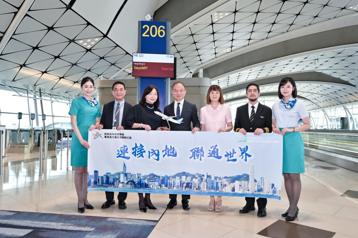政制及內地事務局局長曾國衞(右二)及粵港澳大灣區發展專員陳潔玲(右一)親臨香港國際機場停機坪,在大灣區航空行政總裁吳秀蘭(左二)及大灣區航空營運總裁羅燦(左一)陪同下,為機身以“發揮香港優勢 建設一流灣區”為設計主題的“大灣區號”揭幕。 曾國衞說:“粵港澳大灣區建設是香港積極融入國家發展大局的最佳切入點。香港擁有‘一國兩制’下背靠祖國、聯通世界的獨特優勢,以及高度法治化、市場化、國際化的營商環境,資金可自由進出、金融監管制度完善、簡單及低稅制度,以及全球專業人才匯聚等,令香港成為與內地及世界各地內聯外通的‘超級聯繫人’,在灣區中發揮‘引進來、走出去’的重要雙向平台功能。” 曾國衞期望這架飛機能成為說好灣區故事的空中大使,讓更多人留意大灣區的最新發展以及香港內聯外通的角色,鼓勵各界善用香港的獨特優勢,抓緊大灣區發展所帶來的龐大機遇,促進大灣區的高質量發展。 “大灣區號”飛機主要來往香港與內地及亞洲多個航點,其立足香港、輻射灣區的獨特定位,與其主要航線緊扣大灣區與國際市場,充分體現香港作為大灣區的國際門戶的角色。