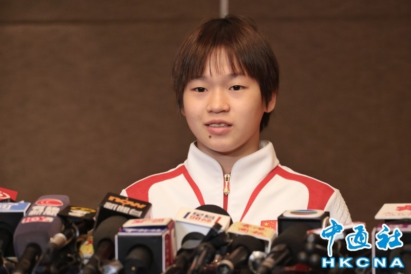 資料圖為跳水運動員全紅嬋接受傳媒訪問。香港中通社圖片