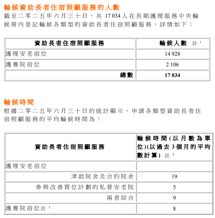圖源:香港特區政府社會福利署 然而,香港的安老院舍服務數量極其有限。根據特區政府社會福利署截至2025年6月30日的數據,香港共有約8萬個安老院舍照顧服務宿位,其中逾4.6萬個為非資助宿位,其中約4萬個由私營安老院提供。 根據現行入住香港受資助安老宿位的相關政策,其對象一般為年齡達65歲或以上,由於個人、社會、健康及或其他原因而未能在家中居住的長者。而年齡介乎60至64歲之間的人士亦可提出申請,但須證實確有需要接受住宿照顧。