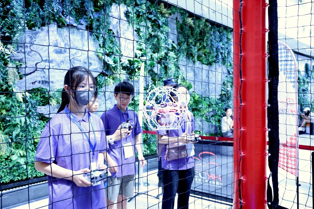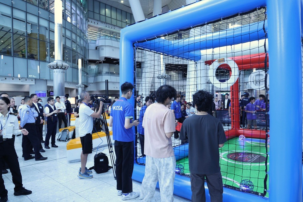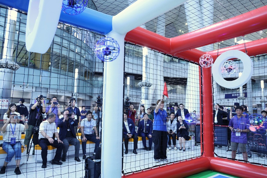 現場戰況十分激烈。紫荊網 活動現場設有無人機足球表演賽及體驗區,來自香港的多支專業團隊進行精彩演示比賽,邀請現場旅客、青年學生及科技體育愛好者參與其中。