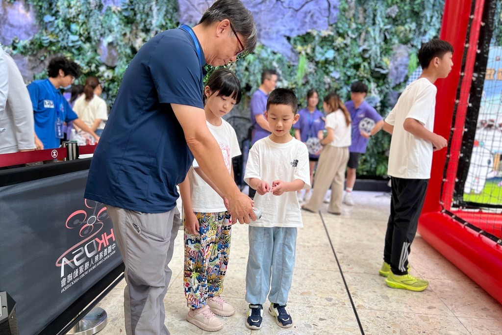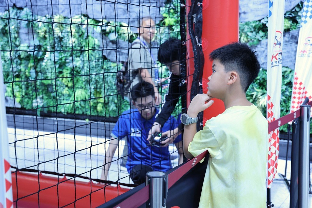 在大眾體驗環節,小朋友們躍躍欲試,親手操作無人機足球。紫荊網 本次活動選址西九龍高鐵站這一重要交通樞紐,與往來香港旅客展開互動,借助這一前沿運動形式為香港與大灣區青年搭建沉浸式互動平台,讓參與者在親身體驗中感受科技賦能體育的創新魅力,促進香港與內地青年之間的交流合作。