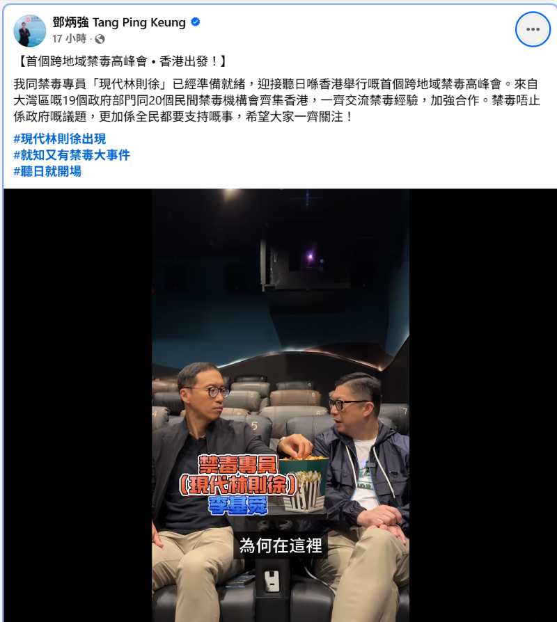 鄧炳強社交媒體截圖 據悉,除國家公安部禁毒局、廣東省公安廳外,澳門方面的保安司、司法警察局、社會工作局及禁毒委員會亦會派代表出席。300位禁毒專家將聚首一堂,為禁毒工作謀劃新方向。 鄧炳強4日表示,“我與禁毒專員“現代林則徐”已準備就緒,迎接5日在香港舉行的首個跨地域禁毒高峰會。來自大灣區的19個政府部門與20個民間禁毒機構將齊集香港,一同交流禁毒經驗,加強合作。禁毒不只是政府的議題,更是全民都要支持的事,希望大家一同關注!”(完) 【編輯:梁嘉軒】