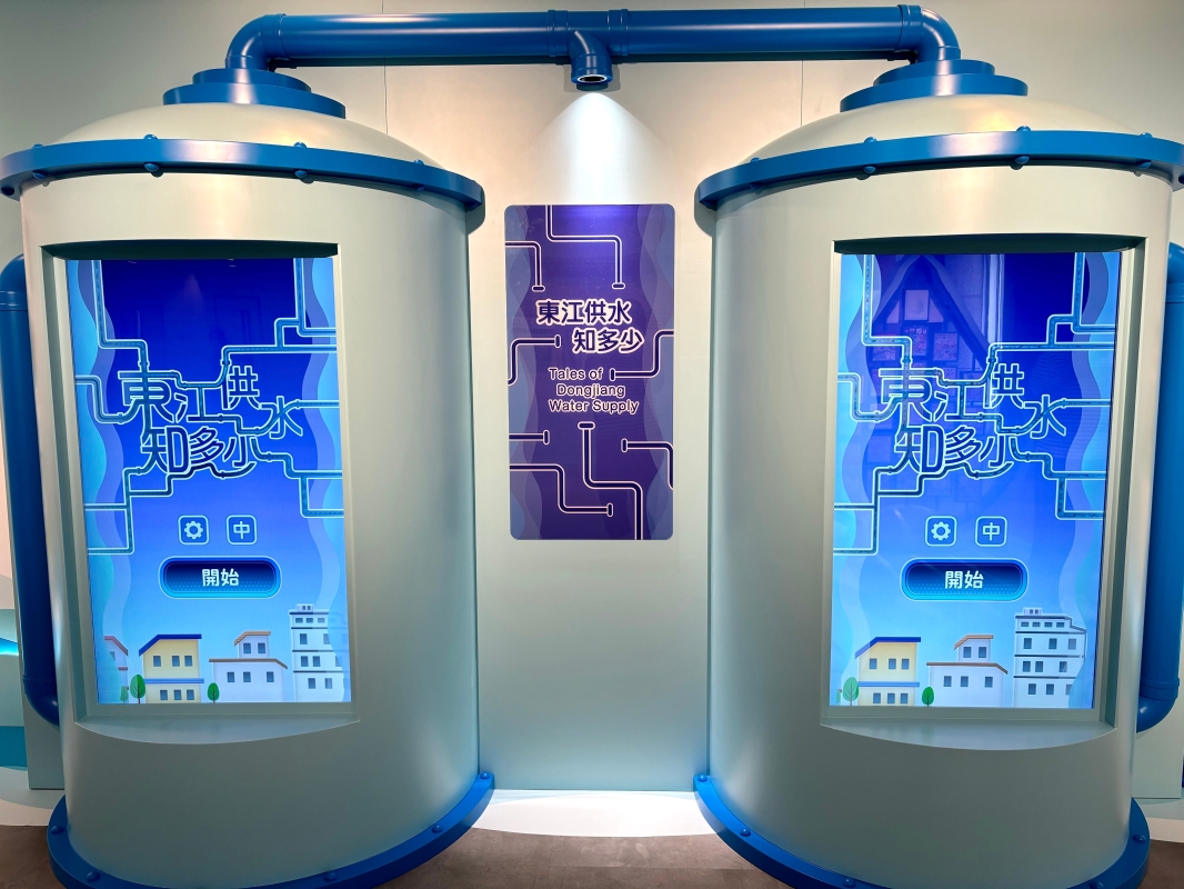 展覽現場的“東江供水知多少”互動裝置。(香港中通社記者 黃璇攝)
