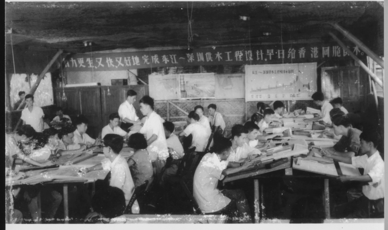東深供水工程技術設計人員埋頭工作。(圖源:香港歷史博物館)