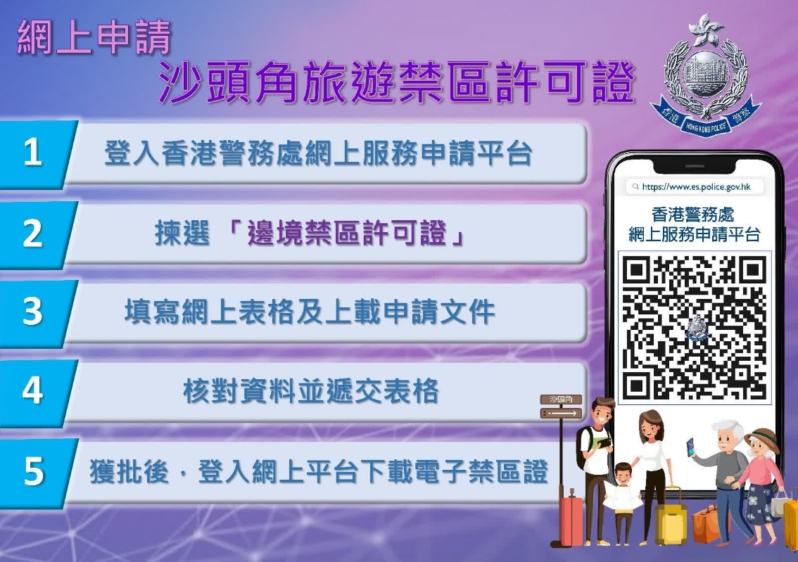 香港新聞網9月12日電 隨著沙頭角邊境禁區逐步開放,現今已搖身一變成為本地一日遊的好去處,申請禁區證後,就可前去探索遊覽及認識當地歷史文化、自然風光及旅遊景點。擔心申請禁區許可證要等好耐?香港警方11日於其fb發放好消息,指警務處最近優化電子禁區許可證申請平台,加快審批時間,由下周一(9月15日)起,只要交齊文件,一般只需兩個工作天就可以搞掂申請。