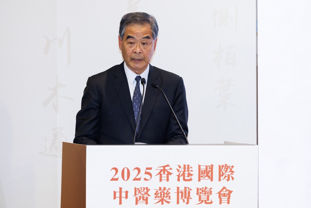 梁振英致辭。紫荊網圖片 梁振英提到,首家中醫院將於今年底開業,採取公私合營、中西醫協作模式,是香港中醫藥發展的里程碑。截至今年4月28日,香港註冊中成藥約8200款,註冊中醫師約10500名。他亦介紹,由其牽頭成立的“中醫藥全產業鏈香港中心”推動設立名為“守創”的中藥材B2B交易平台,位於廣州南沙,致力推動中藥材交易的規範化、標準化與透明化。 梁振英強調,中醫藥是文明交流互鑒的重要載體。他領導的共享基金會已在“一帶一路”沿線九國提供醫療援助,並拍攝英語紀錄片《Qi Rising》向國際講好中醫藥故事。他呼籲秉持互補互利精神,加強與各國傳統醫藥合作,共構人類衛生健康共同體。 陳國基:發揮雙重優勢 助力中醫藥走向國際 陳國基致辭時表示,中醫藥是中華文化的瑰寶,也是世界傳統醫藥的重要組成部分。他強調,香港發展中醫藥具有獨特的雙重優勢:一方面擁有祖國深厚的中醫藥文化資源與底蘊,另一方面具備與國際接軌的醫療體系、科研實力和營商環境。特區政府將整合這些優勢,助力香港成為中醫藥走向國際的橋頭堡。