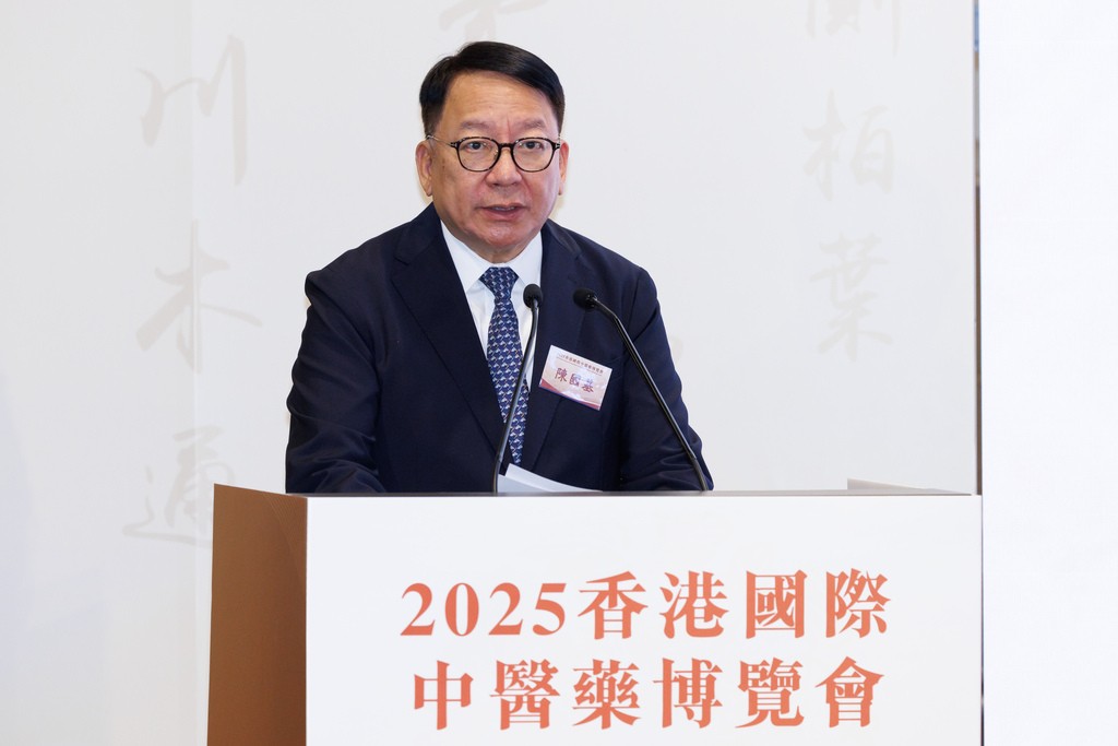 陳國基致辭。紫荊網圖片 陳國基指出,行政長官在《2025年施政報告》中明確今年為香港中醫藥發展的重要一年。香港中醫醫院及政府中藥檢測中心永久大樓將於今年12月起分階段投入服務,首份《中醫藥發展藍圖》亦將於年底公布,為中醫藥發展制定清晰願景與策略。此外,粵港澳大灣區中醫藥傳承創新發展大會亦將於12月首次在香港舉行,標誌着香港中醫藥發展迎來新突破。 他強調,香港將持續深化中西醫協作、推進電子紀錄互通,並發揮“背靠祖國、聯通世界”的優勢,搭建中醫藥“走出去、引進來”的雙向平台,推動中醫藥在全球更廣泛應用。 許正中:匯聚全球智慧 推動傳承與創新