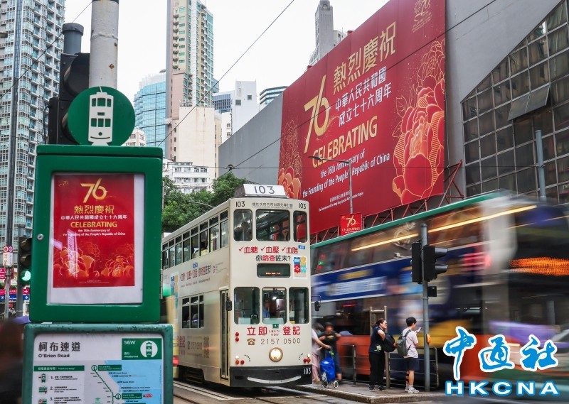 國慶節臨近,香港灣仔街頭迎國慶氛圍濃厚。 (香港中通社記者 徐文峰攝) 香港中通社圖片