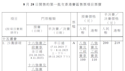 十五運會多個熱門項目門票發售分享到:
