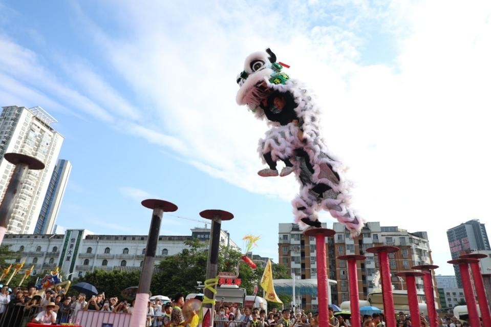 香港仁威龍獅體育會登場。(承辦方供圖) 二是活動內涵廣。活動突破了“你演我看”的傳統模式,首創“競技+市集+體驗”的融合場景。南廣場上,觀眾在驚嘆獅舞高樁技藝與蔡李佛大刀的雄風後,可轉身投入簡易獅頭製作、手打糍粑、涼帽帶編製等非遺工作坊,在親手實踐中深化對非遺的理解。這種沉浸式體驗,讓非遺從“可觀賞”的展品,變為“可感知、可觸摸、可帶走”的生活元素。 三是帶動效應廣。活動巧妙嵌入“2025深圳購物季”,以文化流量撬動商業增量。為卓悅匯購物中心帶來流量和商機,“文化IP”賦能“商圈經濟”的模式成效斐然。梅林本地的涼帽、草編等非遺技藝藉此機會得到集中展示與銷售,實現了文化傳承與消費提振的“雙贏”。 於街巷間傳遞文化星火 本次活動并非一場簡單的民俗表演,在策劃之初就是為了讓高水平的非遺走入尋常街巷。“以往只能在電視上看到的頂尖獅王,如今就在家門口表演,這種震撼無以言表”家住梅都社區的張先生感慨道,“帶著孩子追著看,對舞獅產生了濃厚興趣。” 這正是活動主辦方的初衷:讓優秀的傳統文化在潛移默化中,融入市民的精神氣質與日常生活。 獅王群英會雖已落幕,但餘音繞梁,文脈綿長。這場在全球超大城市中難得的“城央桃源”——福田梅林奏響的非遺華彩樂章,不僅是一次成功的社區文化活動,更是一次關於文化自信與城市精神的生動表達,為大灣區的文化圖景增添了濃墨重彩的一筆。(完) 【編輯:錢林霞】