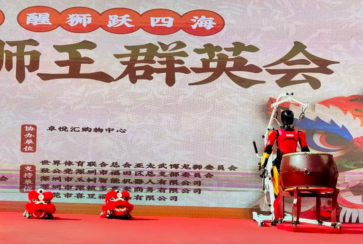 玉樹機器人及機器狗組成的“迷你”醒獅隊登場。(承辦方供圖) 除了精彩的醒獅比賽,由深圳市玉樹智能機器人及機器狗組成的醒獅隊登場更是讓現場觀眾激動歡呼,當機器狗披著醒獅服裝騰空翻出漂亮的跟頭時,也讓每個人都看到了非遺傳承的過去、現在與未來。它證明,非遺只有走進現代生活、對接當代審美、滿足人民需求,才能真正‘活’起來、‘火’下去。 以“文化IP”賦能“商圈經濟” 本次活動的“廣”度,體現在多個維度。 一是隊伍來源廣。十支明星獅隊不僅覆蓋國內兩廣、粵港澳大灣區核心城市,更吸引了新加坡、馬來西亞、越南等東南亞國家的優秀團體,充分體現了醒獅文化作為中華文化名片的國際影響力,搭建了一座跨地域的文化交流橋樑。