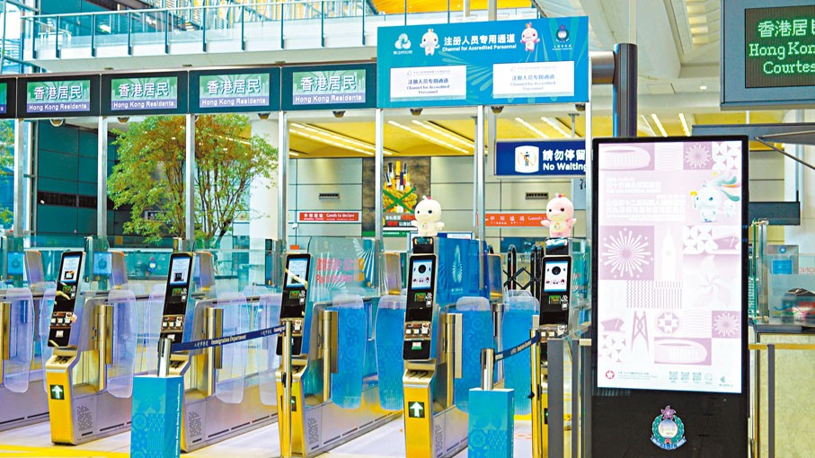 為此,入境處前日起在香港國際機場、高鐵西九龍站、港珠澳大橋及深圳灣口岸4個指定管制站共設置16條專屬自助通道,方便相關人員快速通關。