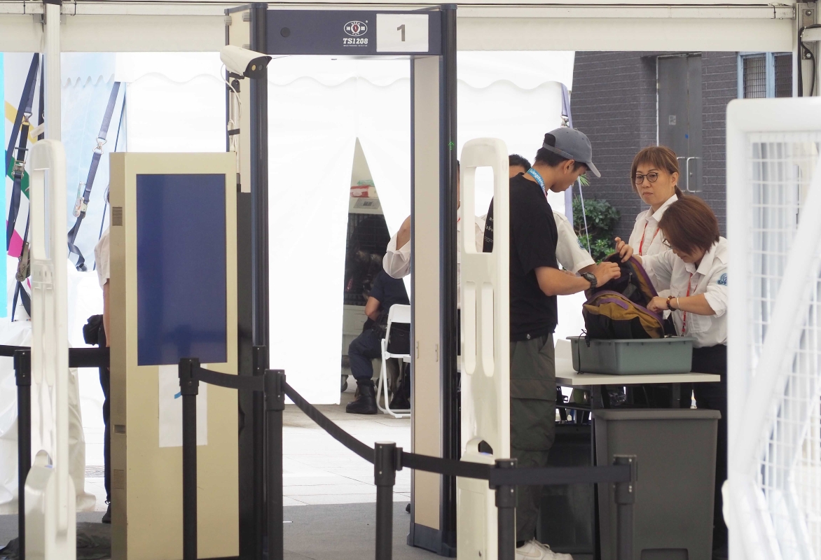 記者抵達主媒體中心安檢