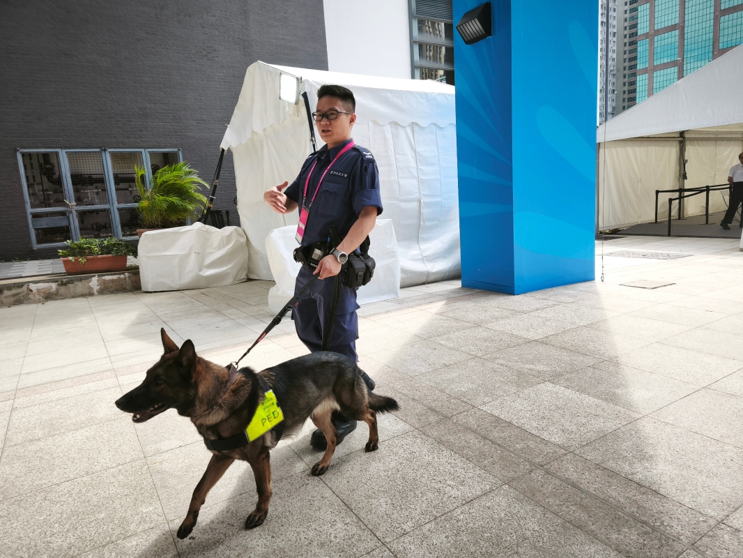 主媒體中心有警員在巡邏安檢