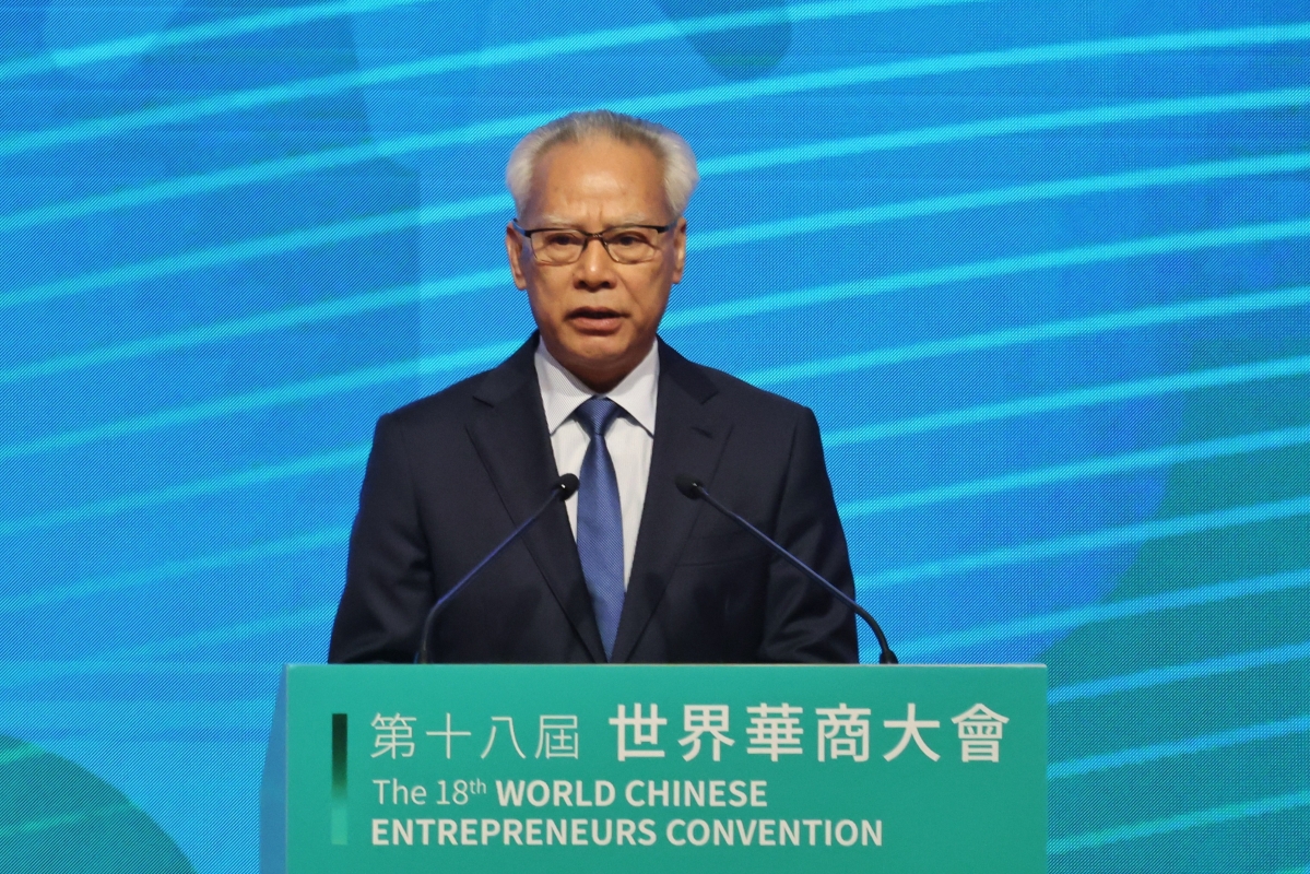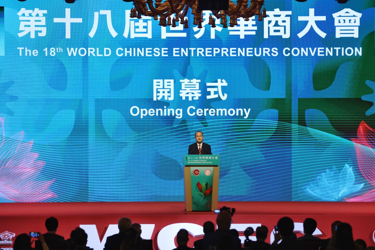 澳門特首岑浩輝在開幕式上致辭。香港中通社記者 謝光磊 攝 尤其值得注意的是,兩位官員均提及剛閉幕的中共二十屆四中全會,視其為中國未來五年發展的“宏偉藍圖”。這不僅是對內政策的宣示,更是向全球華商傳遞明確信號:中國將持續深化改革開放,推動高質量發展,並以更高水平對外開放擁抱世界。對華商而言,這意味著中國市場不僅是“避風港”,更是“發動機”——投資中國,即是投資未來。 三、代際傳承與創新:華商精神的時代升級 在肯定老一輩華商“篳路藍縷、敢為人先”精神的同時,嘉賓們亦強調新生代的角色。香港中華總商會會長蔡冠深特別提到“培育青年商業領袖”,推動“企業傳承創新”;咸輝則呼籲“老一輩的堅韌智慧與年輕一代的全球視野和創新激情交相輝映”。