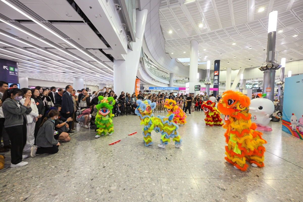 剪綵儀式合影 全國人大代表、立法會議員馬逢國,全國人大代表、九龍社團總會理事長徐莉,紫荊雜誌社副社長黃曉華,港鐵公司過境鐵路總管王家明,全國運動會香港賽區統籌辦公室總行政主任吳啟鳳,港鐵公司高速鐵路營運主管許振聲,南洋商業銀行總裁辦公室代表李虹,ABC Pathways Group總經理鄧仲頤,中國香港無人機運動總會主席鄒偉傑,希望種子籃球亞洲創辦人、前香港男子籃球代表隊成員梁國成,香港體育學院助理賽艇教練李婉賢,全職運動指導教練、退役賽艇運動員、奧運選手李嘉文等主禮嘉賓出席啟動儀式。