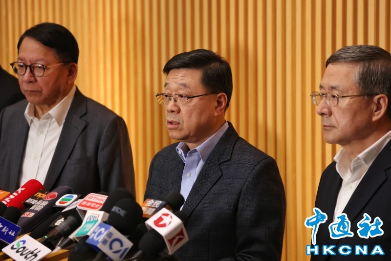 11月27日下午,香港特區行政長官李家超聯同相關官員在政府總部就大埔宏福苑五級火警跟進工作會見傳媒。香港中通社圖片 李家超感謝中央港澳辦工作小組抵港協助開展救援工作,充分體現中央對香港的關愛,以及國家“一方有難,八方支援”的精神。 政務司司長陳國基表示,非常感謝廣東消防救援總隊及深圳市消防支隊,他們借出8架配備熱成像功能的勘測無人機,以及2架可提供長期供電的無人機,這些裝備有效協助香港消防處加強火災現場的勘察與緊急調派工作。(完) 【編輯:李濼】