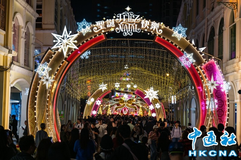 12月24日是平安夜,澳門議事亭前地巨型聖誕樹裝置吸引不少旅客到場打卡感受節日氣氛。香港中通社圖片 治安警數據顯示,訪澳旅客中,內地旅客佔72%、香港旅客18%、台灣旅客2.5%,其他旅客佔6.8%。 特區政府統計暨普查局近日亦公布11月入境旅客數字,資料顯示,11月入境旅客逾334萬人次,按年上升18.1%;2025年首11個月的入境旅客近3649萬人次,按年上升14.4%。(完) 【編輯:胡雪石】