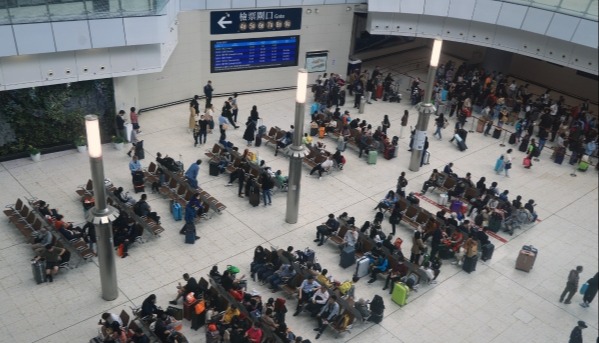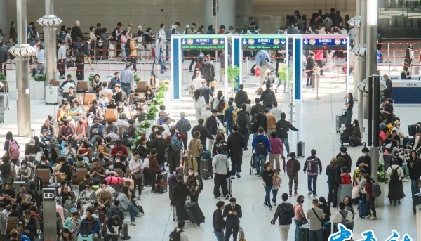 4月3日,清明復活節首日,離港的人流擠滿香港西九龍高鐵站。(香港中通社記者 陳奕啟 攝) 香港中通社圖片