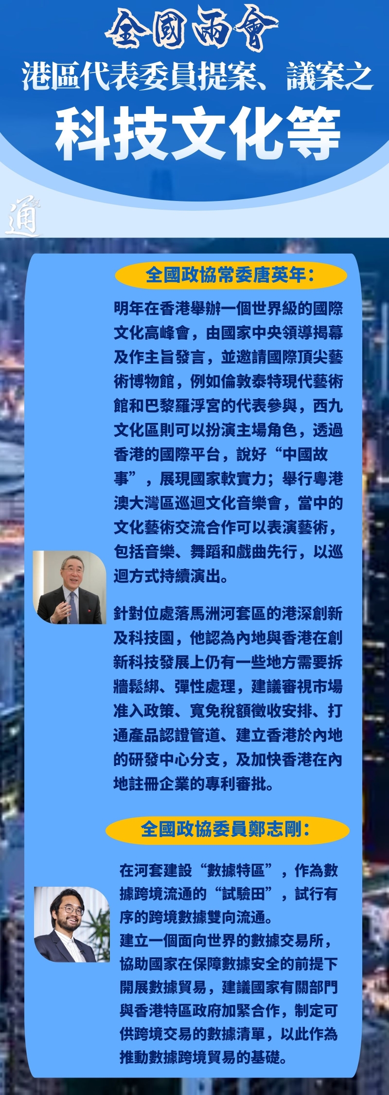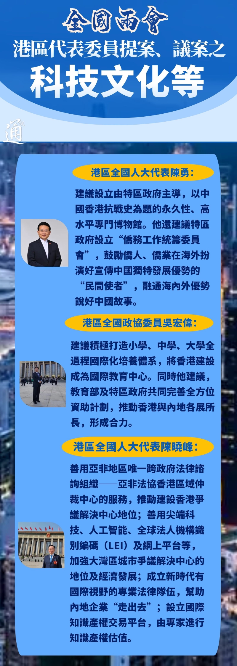 全國兩會|港區代表委員提案、議案之科技文化篇