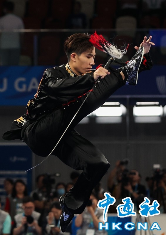 許得恩。圖源:香港中通社 金牌得主為國家隊選手高浩楠,他在太極拳和太極劍決賽,分別取得最高的9.83分和9.836分,合計共取得19.666分。銅牌則由菲律賓代表以19.486分取得。(完) 【編輯:李泺】