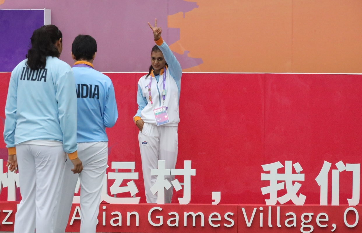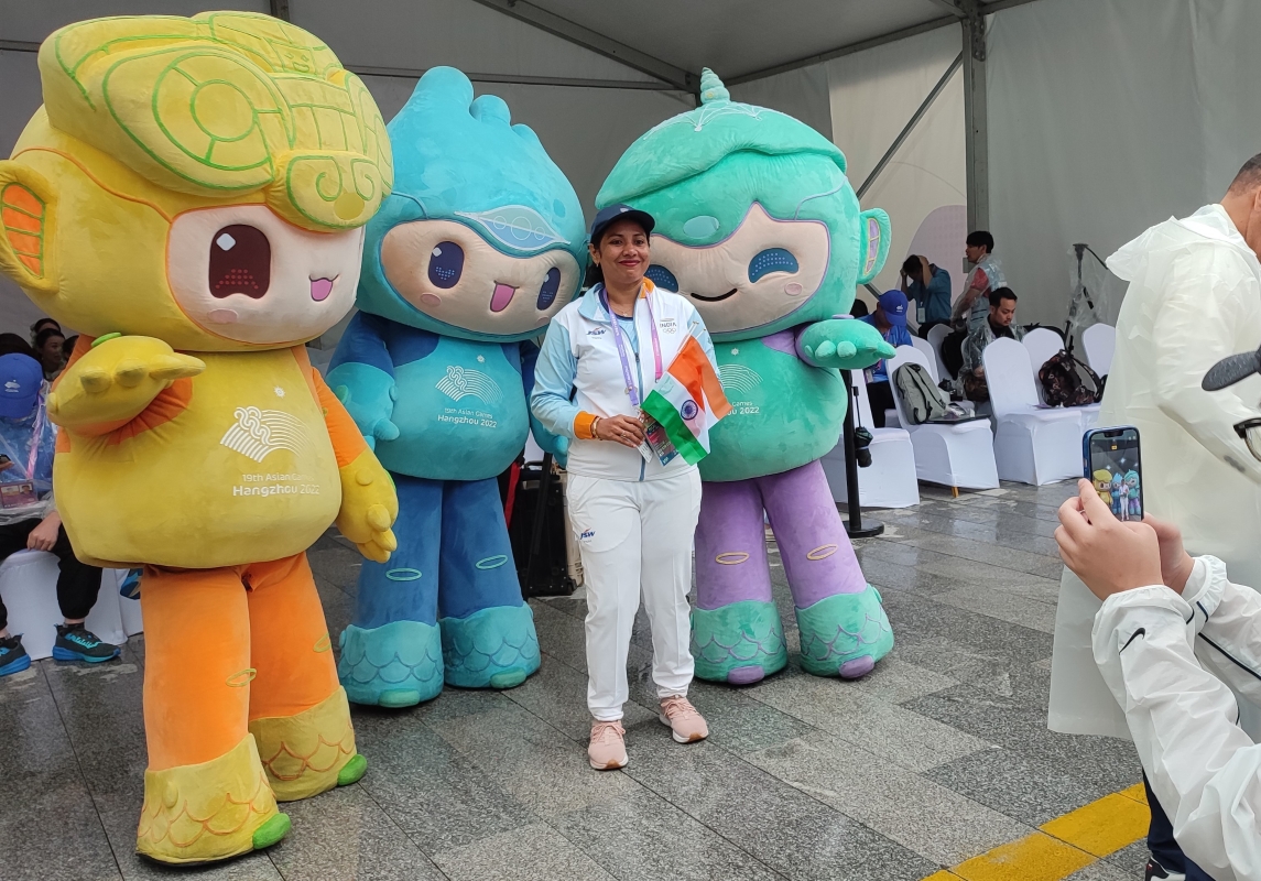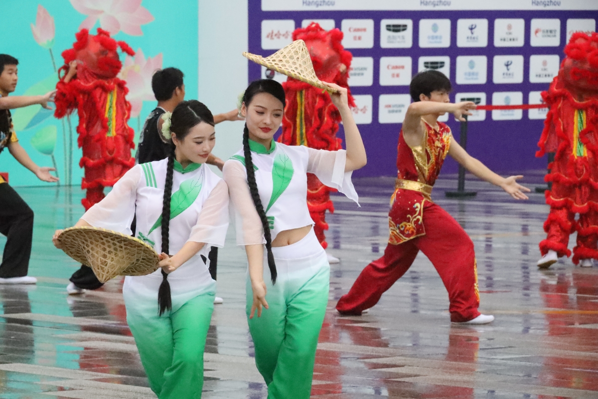 外國體育代表團成員與杭州亞運會吉祥物留影