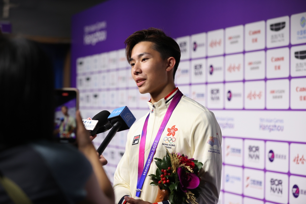 香港選手許得恩賽後接受中通社採訪 【編輯:洪少葵】