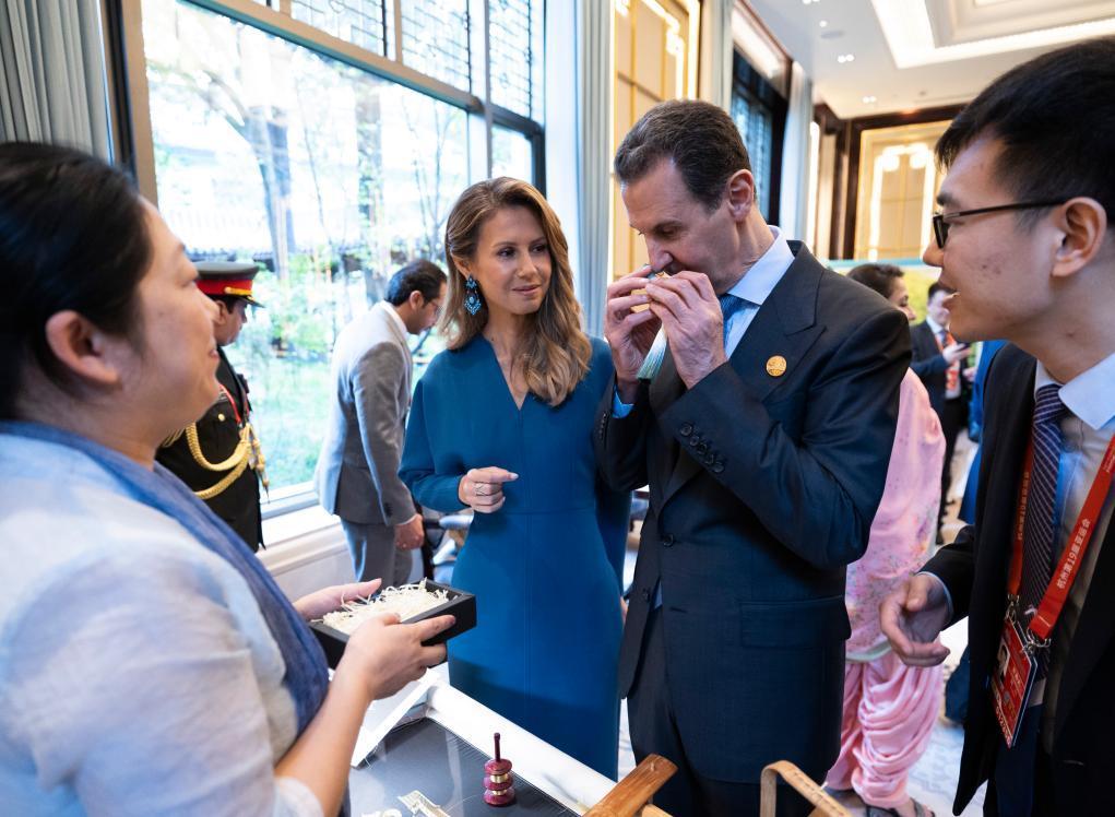叙利亞總統巴沙爾和夫人阿斯瑪欣賞杭綉展示。新華社記者 黃敬文 攝 穿青花瓷長裙被網友點贊 據《環球時報》綜合報道,叙利亞總統巴沙爾偕妻子阿斯瑪當天拜訪了杭州市餘杭區徑山鎮小古城村,學習鄉村發展經驗。現場圖片顯示,阿斯瑪身著一襲青花瓷圖案長裙,與村民親切交流。中國網民對此稱讚道,感受到了阿斯瑪對中國文化的喜愛。 在另一則廣泛流傳於社交媒體的視頻中,阿斯瑪於22日參觀靈隱寺時被中國游客誇讚道:“你真漂亮!”阿斯瑪帶著大方的笑容回應稱:“你們有個美麗的國家!”有網民表示,阿斯瑪的回應十分得體,同時也表達了她對叙利亞飽受戰亂摧殘的痛心之情。還有網民直言,被阿斯瑪的回答“戳中淚點”。 曾與巴沙爾“異地網戀” 現年48歲的阿斯瑪·阿薩德出生在英國倫敦的一個叙利亞移民家庭,父親是一位名醫,母親則是一位外交官。家境優越的阿斯瑪本科就讀於倫敦大學國王學院,在一次學校組織的酒會上,她邂逅了赴英留學的巴沙爾·阿薩德。 巴沙爾比阿斯瑪大10歲,1.9米的身高、文質彬彬的舉止,令阿斯瑪對他一見鐘情,兩人迅速墜入愛河。不過,在1994年,因哥哥飈車不幸去世,仍在學醫的巴沙爾被時任叙利亞總統的父親召回國,開始接班程序。巴沙爾回國後,主要通過電子郵件與女友保持聯繫。其間,阿斯瑪經常用歷史上的名人逸事鼓勵巴沙爾。有媒體打趣稱,兩人的戀愛竟為“異地網戀”。 2000年10月,25歲的阿斯瑪放棄了在摩根大通的工作和一張剛剛收到的哈佛商學院錄取通知書,從英國飛到叙利亞,與巴沙爾結婚。婚後兩人感情很好,育有3位子女。阿斯瑪成了賢內助,千方百計地為巴沙爾分憂解難。 雖然從不像傳統阿拉伯人那樣穿民族服裝、戴頭巾,但頑強、能乾的阿斯瑪積極參與國家事務,為叙利亞的教育、慈善和衛生等作出許多貢獻,受到叙利亞人的歡迎,被當地媒體譽為“沙漠玫瑰”。而在國際舞台上,法國《巴黎競賽畫報》曾評價稱,阿斯瑪熱衷慈善,集美麗與善良於一體,堪稱“東方的戴安娜王妃”。 “她一個人抵一個師” 自2011年叙利亞內戰開始以來,一些西方媒體散播假消息,稱阿斯瑪帶著3個孩子跑到其他國家避難。英國《星期日郵報》批評她在叙利亞深陷水深火熱時,還在購買世界名牌服裝。阿斯瑪及時站出來,以一身普通休閑裝示人,在電視上戳穿了謊言:“打一開始,我就待在叙利亞,從沒想過要去其他地方。叙利亞是我的國家,我要永遠待在這裡!” 隨後,阿斯瑪成立了叙利亞發展基金,為貧困人口提供小額貸款。她倡導婦女實現自己的社會價值,鼓勵她們勇敢地走出家門工作。為此,阿斯瑪也被許多阿拉伯國家的女性視為偶像。 對於阿斯瑪的高人氣,有西方媒體調侃稱:“如果以第一夫人為標準來衡量加入歐盟的可能性,叙利亞會比土耳其更有機會。”美國方面還曾表示,阿斯瑪抵得上一個師的兵力! 突尼斯《東方報》評價稱,巴沙爾的夫人阿斯瑪形象嬌美、舉止端莊,受到叙利亞國內甚至其他阿拉伯國家人民的愛戴,為巴沙爾增分不少。尤其是在戰亂時期,阿斯瑪堅定地站在巴沙爾一邊,即使被診斷罹患癌症,也堅定支持丈夫,并表示永遠不會離開叙利亞。她的言行在一定程度上凝聚了人心,幫助丈夫守護著風雨飄搖的國家。 【編輯:俞丹鳳】