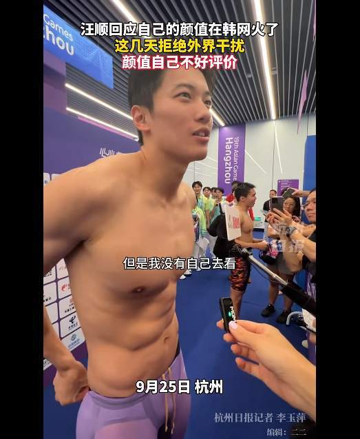 據《杭州日報》報道,賽後,浙江籍運動員汪順在接受采訪時被提及:熱搜上在討論你的顔值。汪順則表示:“這幾天拒絕外界干擾,別人告訴我才知道。顔值這種東西,自己不好評價。” 男子50米仰泳決賽