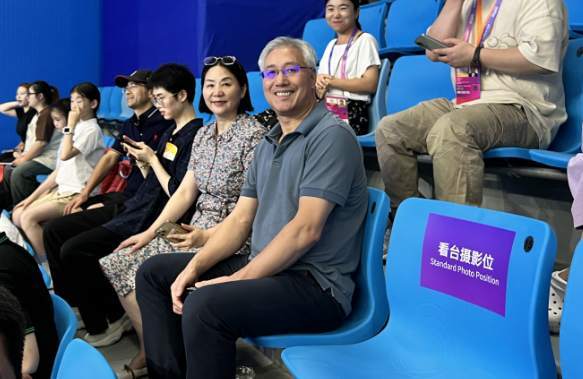 晚上7點10分,賽前熱身後,葉詩文全程微笑著經過觀眾席,有粉絲大喊:“小葉子加油!好好享受今晚的比賽。” 我們在賽場外見到了葉詩文的媽媽寧一清。寧阿姨今天很放鬆,直言對女兒的這場決賽沒有高要求,順其自然,竭盡全力,比了那麼多次了,享受比賽就好。