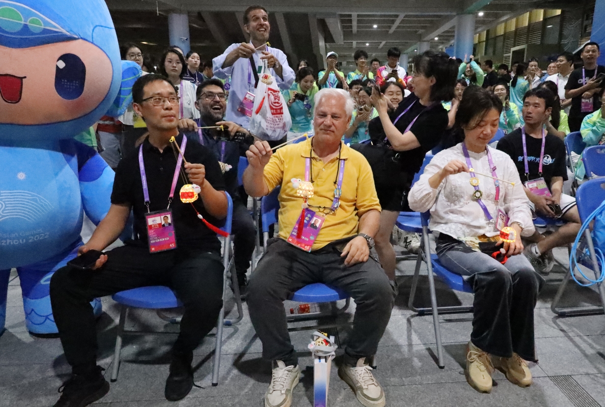 香港新聞網9月29日電(記者洪少葵)9月29日是中秋節,在杭州亞運會媒體村,組委會舉辦一系列慶祝活動,包括“媒”滿中秋 吉利送福,有DIY表演,汽車後備箱集市、打卡祝福、圍爐煮茶、非遺體驗、文化互動體驗和江南絲竹音樂等,讓各地記者熱鬧歡度中秋節。