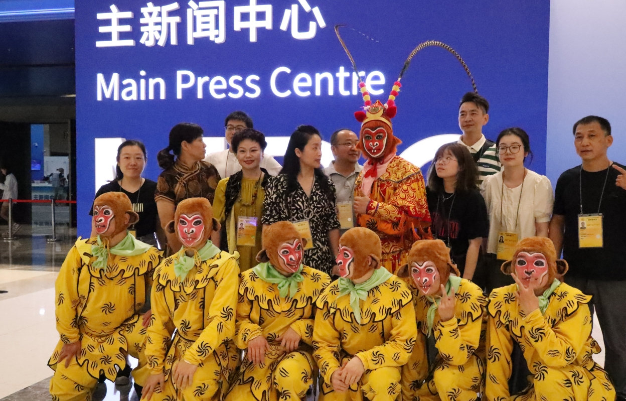 外國記者與演員合影