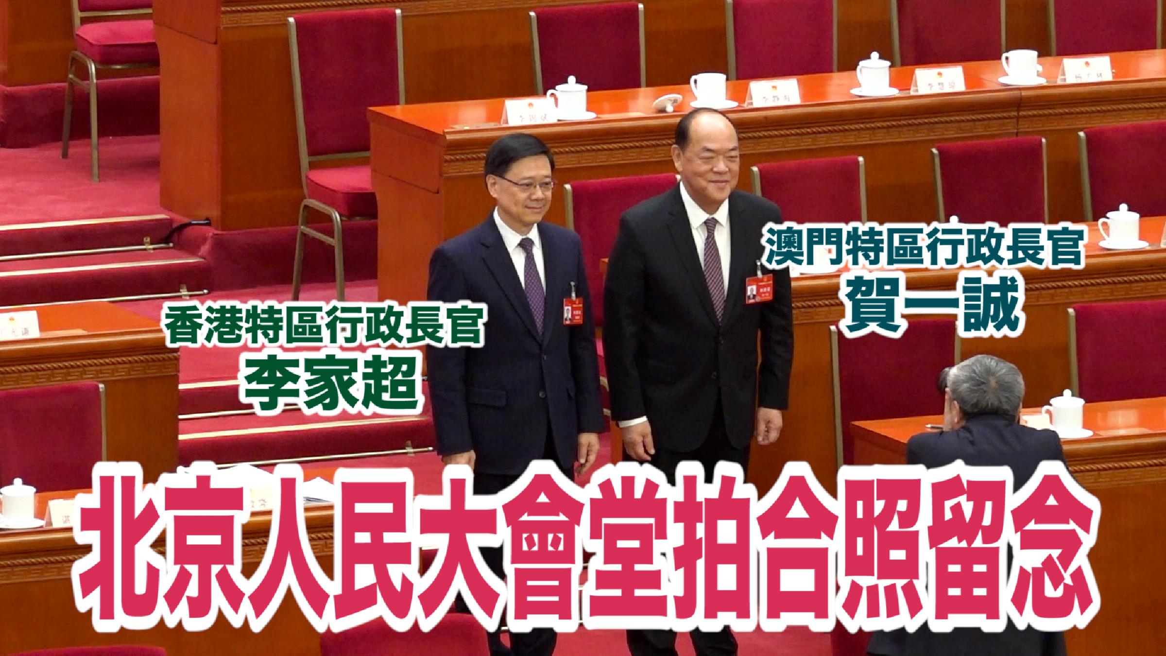3月5日,十四屆全國人大二次會議在北京人民大會堂開幕,香港特區行政長官李家超(二排中)、澳門特區行政長官賀一誠(二排左)列席開幕會。(香港中通社記者 許其皓攝) 香港中通社圖片 當天,中通社記者在人民大會堂現場見到,香港特區行政長官李家超與澳門特區行政長官賀一誠相鄰而坐。約一小時的會議時間,李家超一邊聽取國務院總理李強作政府工作報告,一邊認真做筆記,不時拿筆劃線。 政府工作報告中表示,我們要繼續全面準確、堅定不移貫徹“一國兩制”、“港人治港”、高度自治的方針,堅持依法治港,落實“愛國者治港”原則;支持香港發展經濟、改善民生,發揮自身優勢和特點,積極參與粵港澳大灣區建設,更好融入國家發展大局,保持香港長期繁榮穩定。支持粵港澳大灣區等經濟發展優勢地區更好發揮高質量發展動力源作用。 李家超在社交平台寫下現場聽取政府工作報告的感受。他說對此感到很鼓舞,今年是新中國成立七十五周年,是實現“十四五”規劃目標任務的關鍵一年,對“一國兩制”實踐具有重要意義。在中央的指導支持下,香港特區政府必定繼續全面準確、堅定不移貫徹“一國兩制”、“港人治港”、高度自治的方針,發揮好“愛國者治港”的力量和價值,團結各界,全力發展經濟、改善民生,並充分把握好“十四五”規劃、粵港澳大灣區建設、“一帶一路”倡議等國家戰略帶給香港的龐大機遇,積極融入國家發展大局,提升國際競爭力。 李家超還寄語港區全國人大代表和港區全國政協委員,履職盡責,繼續提出具建設性的建議和提案,發揮積極作用。祝願本次全國兩會圓滿成功。 據了解,在北京期間,李家超還將拜訪中央部委,增進交流和合作。(完) 【編輯:丘志彬】