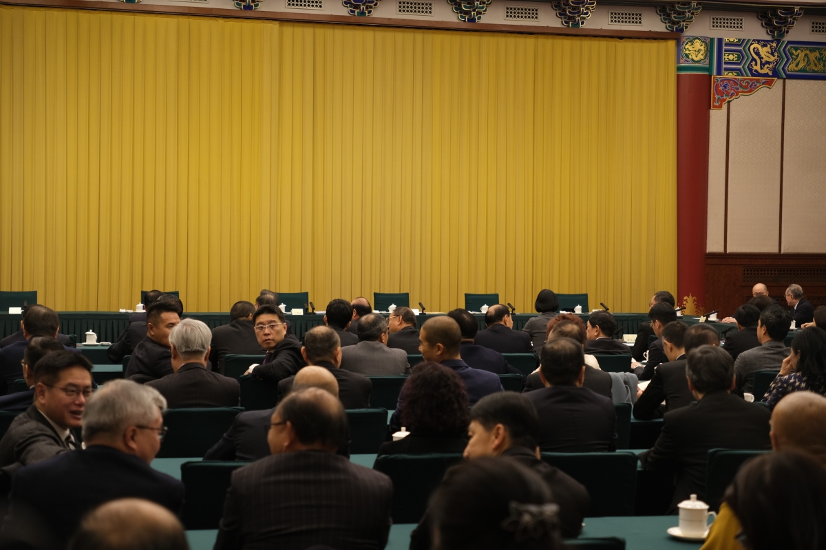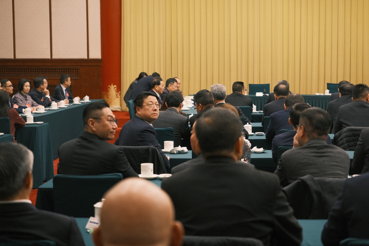 現場圖片 當日,聯組會議開放給港澳媒體入場拍攝。香港中通社記者現場所見,有來自香港和澳門的委員發表講話。在聽取委員發言後,丁薛祥與他們親切交流。
