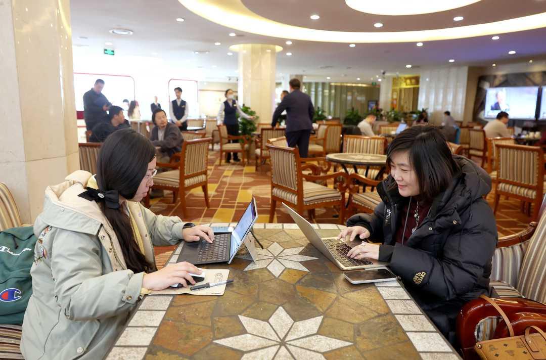 2月27日,位於北京梅地亞中心的全國兩會新聞中心,媒體記者正在工作。來源:經濟日報