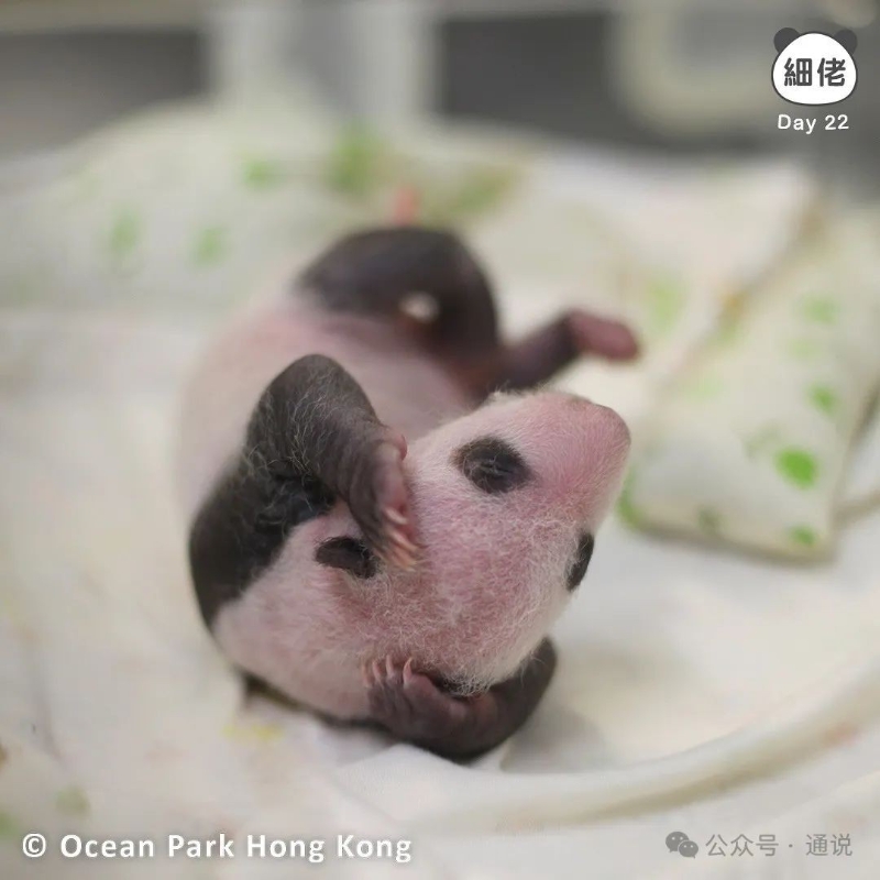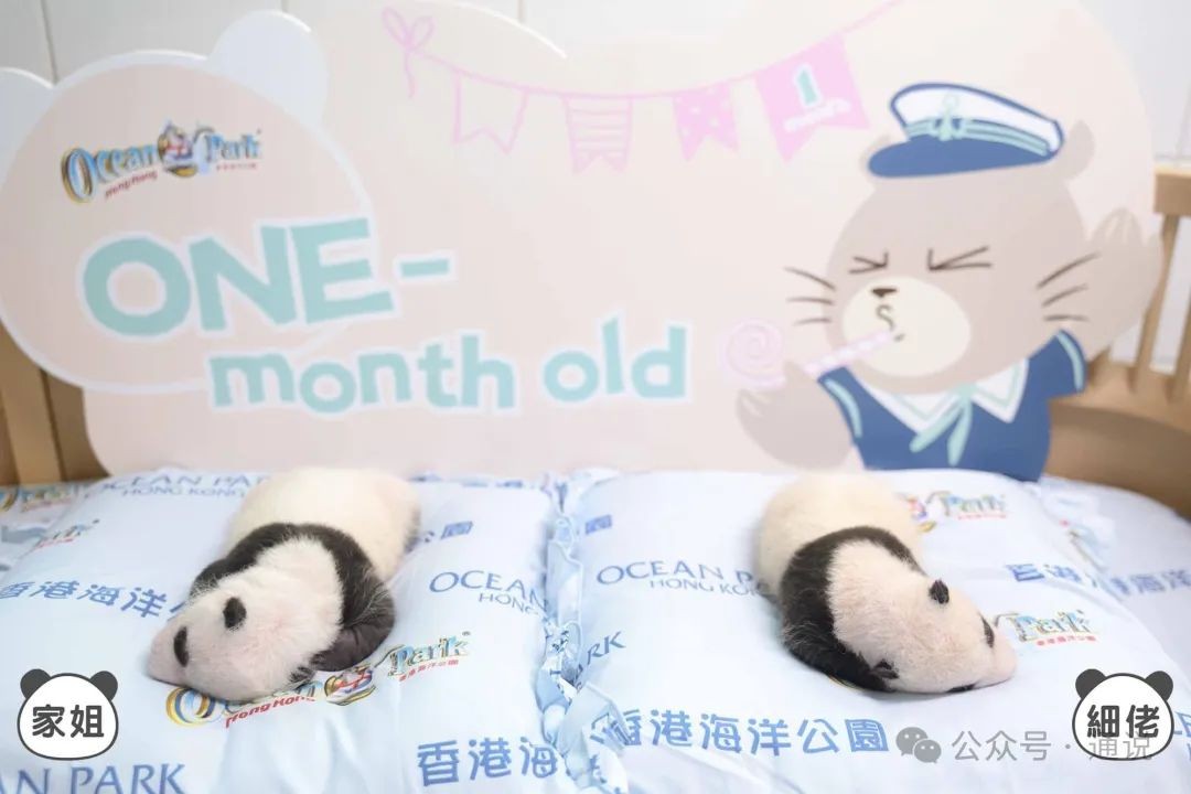 從照片可見,大熊貓姐姐和弟弟身上的毛髮開始變得濃密,熊貓樣逐漸成形。海洋公園說,姐弟兩個已經開始可以自行調節體溫,慢慢適應離開保溫箱的生活。熊貓BB毛髮鬆軟,正處於“暴風式成長”階段! 這一個月來,香港市民每天都在關心:今天熊貓BB長毛了嗎?有黑眼圈了嗎? 海洋公園特地開設了社交平台,讓大家雲養娃,一有新變化就更新,不錯過成長點點滴滴。滿月這一天,還邀請市民吃豬腳姜,一起慶祝這個大日子。