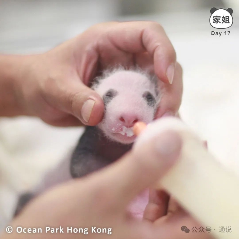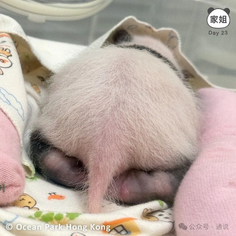 盈盈由於屬於高齡產婦,恢復速度較年輕媽媽慢,預料仍需一段時間才能完全恢復元氣。海洋公園已為盈盈調整“坐月子餐單”補充營養,幫助它盡快恢復食欲及體力。 可以看到,大熊貓的成長一眨眼就變了一個樣。從一開始沒有太多毛髮的光溜溜小粉肉團,到半個月時已經長出了白色毛、出現了標誌性的黑眼圈。