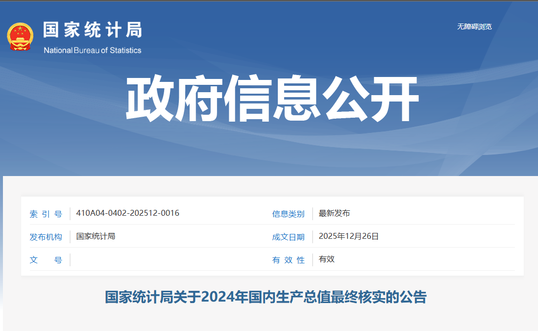 圖片來源:中國國家統計局官網截圖 GDP是國民經濟核算的核心指標,也是衡量一個國家經濟狀況和發展水平的重要指標。按照中國GDP核算和數據發布制度規定,年度GDP核算包括初步核算和最終核實兩個步驟。近日,根據國家統計局統計年報、財政部財政決算和有關部門年度財務資料等,國家統計局對2024年GDP數據進行了最終核實。(完) 【編輯:林曉惠】