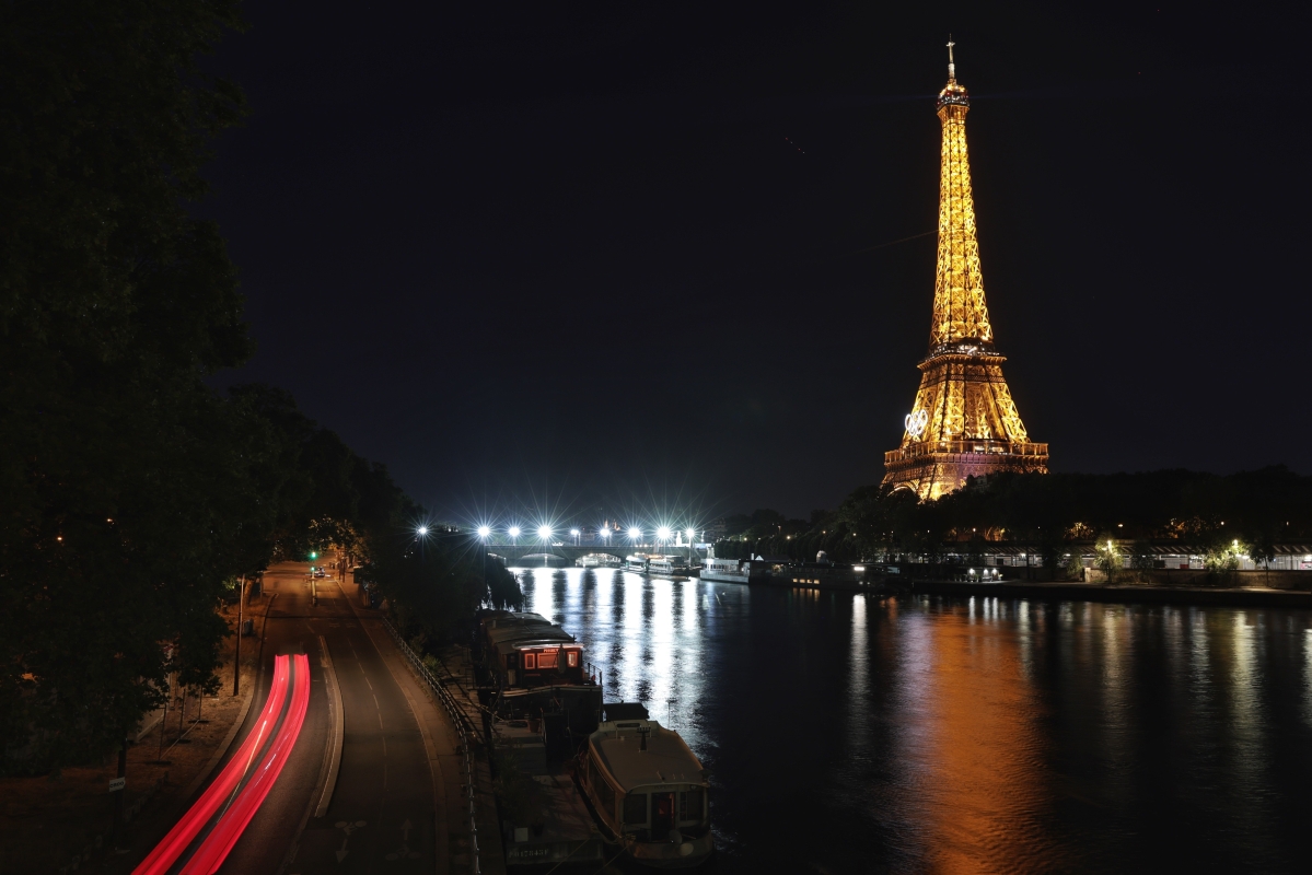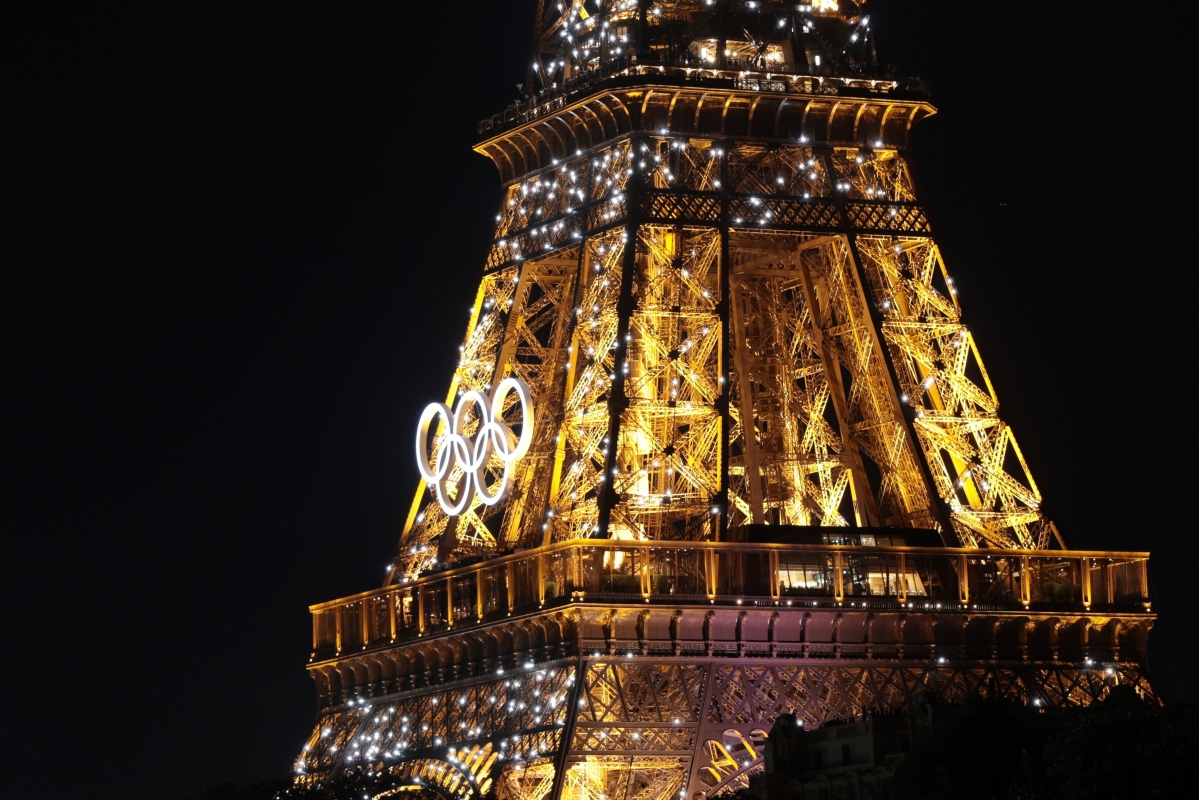 奧運五環標誌在埃菲爾鐵塔 【編輯:洪少葵】