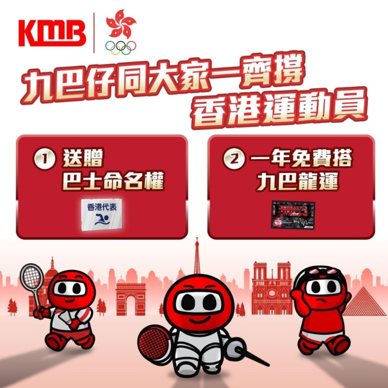 圖源:九巴 九巴表示,向所有代表團成員包括出戰比賽的健兒、教練和醫療團隊等,送贈一年免費乘搭九巴和龍運巴士,以及向港隊運動員送贈巴士命名權。每位港隊運動員可為一輛九巴巴士命名,載有命名內容和信息的名牌將安裝於巴士車廂內。 九巴還將推出全新“支持港隊”主題巴士,穿梭大街小巷,與港人齊撐港隊,大聲說出“Proud of You”。 早前,為支持運動員及支援團隊,港鐵公司亦表示,向所有出征巴黎奧運會的香港運動員送贈一年有效的港鐵免費車票。 【編輯:王瑶】