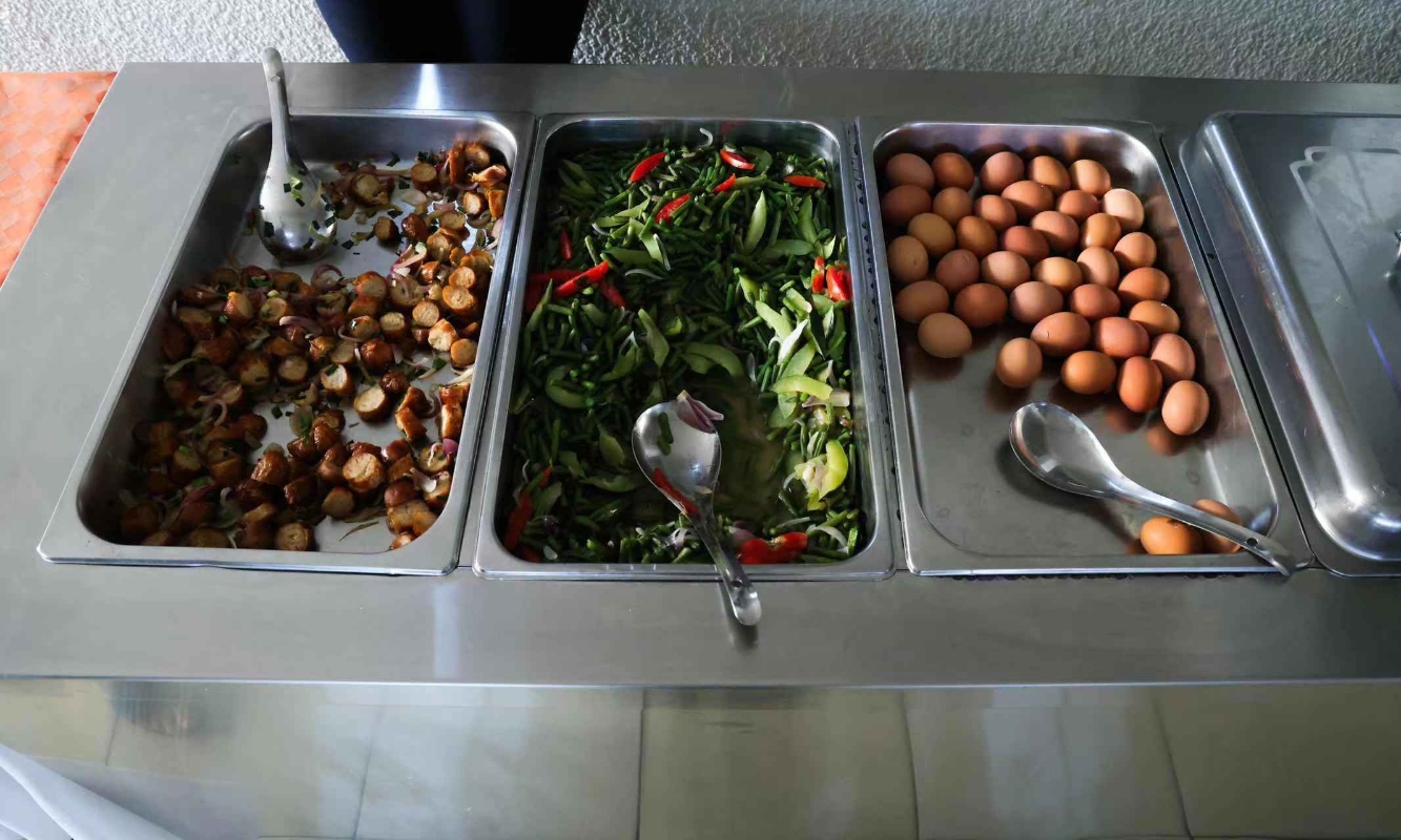 酒店裡的食物有一定的特色,但吃起來感覺很乾。