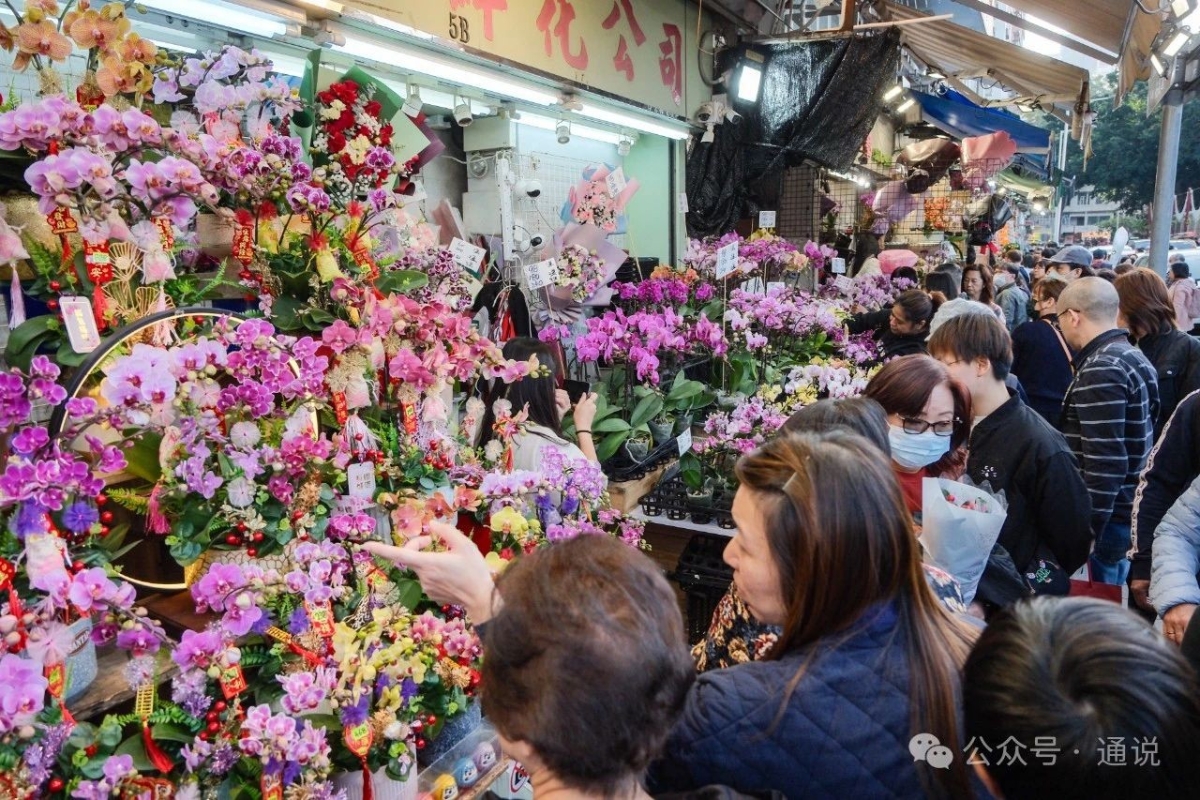 若論在香港買花,擁有超過百年曆史的旺角花墟則不容錯過。 香港花墟是一個花卉零售與批發的集散地。早在1900年代,當時香港有大量鮮花供應,因此花農每天都集中於現今的花墟道一帶擺賣,花墟因而得名。去年官方公佈此處將重建,也讓市民今年更愛來逛年花。 記者近日也走進花墟,四周花香四溢,盆盆或梅紅或淺粉的蝴蝶蘭等年花相交相輝映,為街頭綴上大片亮色。劍蘭、牡丹、桃花、蝴蝶蘭……各式各樣新春花卉爭奇鬥艶,有著不同的吉祥意頭。