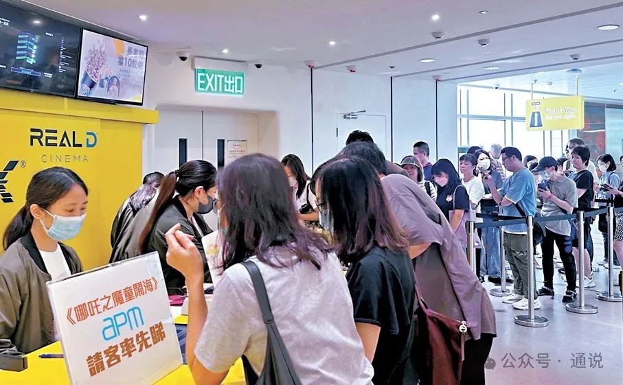 20日,購票慢慢熱了起來,甚至有些影院早上8點半的場次都被買光了。香港各商場和電影院被觀眾熱情驚到了,場次多了一些,還有商場趁熱打鐵“請客率先看《哪吒2》”。位於香港居民區的幾個較大型商場,相繼推出活動,買滿1000港元,送《哪吒2》電影票兩張,咨詢顧客大排長龍。