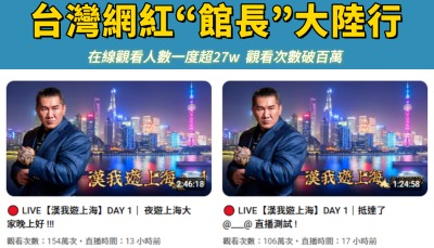 通說:一直播就是10萬+ 台灣網紅大陸行“嚇壞”民進黨6月10日下午,台灣百萬級網紅“館長”抵達上海,開啟了他為期六天的大陸之行。當晚7點15分左右,他便在自己的YouTube頻道開啟直播測試,一小時內最多有近10萬人同時在線觀看。