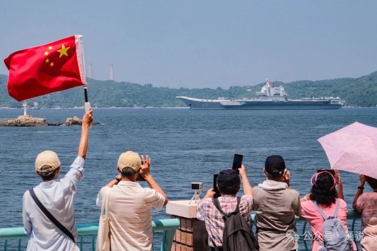 通說:一聲鳴笛“航母熱潮”席捲香港。7月7日上午,隨著一聲長長的鳴笛,香港南區鴨脷洲玉桂山上的人們大聲歡呼,一面鮮艶的五星紅旗被高高舉起,迎風飄揚。人們奮力舉起自製的紙牌,上面寫著:軍強民樂。山東艦的鳴笛聲和山頭上人群的呐喊聲隔著山海在空氣中交融,聲浪中盛滿連日來軍民間的親密互動和濃厚情誼。 (香港中通社視頻) 香港特別行政區政府在昂船洲軍營碼頭舉行歡送儀式,海軍、南部戰區、駐香港部隊有關領導和編隊指揮員出席,前來送別的香港市民和青少年學生代表早早便趕到昂船洲軍營碼頭歡送山東艦航母編隊離港。 繁忙的維多利亞港裡,山東艦、延安艦相繼起錨,延安艦桅桿上升起旗語為“感謝大家關懷”“為人民服務”的信號旗。 隨後,湛江艦、運城艦響起清脆的海軍笛,駛離昂船洲軍營碼頭,前往預定海域與山東艦、延安艦會合。香港特區直升機、船隊一路引航伴航,護送編隊駛出區界。 5天前,由中國人民解放軍海軍航空母艦山東艦,導彈驅逐艦延安艦、湛江艦及導彈護衛艦運城艦組成的航母編隊,攜多型艦載戰鬥機、直升機和陸戰隊員抵達香港,開啟為期5天的訪問活動。