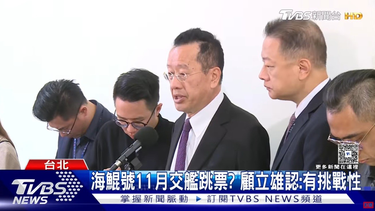 10月13日,台防務部門負責人顧立雄在匯報項目進度時坦言:“想要在11月完成(交艦),確實是具有很大的挑戰性。”這句話,幾乎等於承認“海鯤號”已無法按合約如期交付。